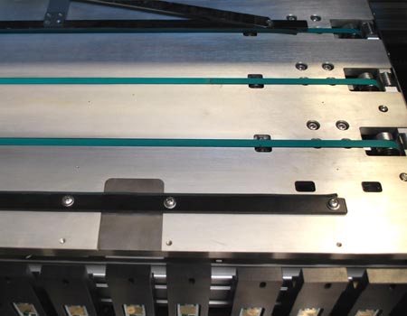1.電路板傳動采用精密電機(jī)帶動工業(yè)皮帶配合精密導(dǎo)軌實現(xiàn),有效提高貼片精度。