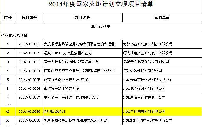 此項(xiàng)工作已于近日?qǐng)A滿完成,同志科技攜新研發(fā)成果——真空回流焊V3進(jìn)行報(bào)名參加評(píng)選,并成功取得了2014年度國(guó)家火炬計(jì)劃立項(xiàng)項(xiàng)目。
