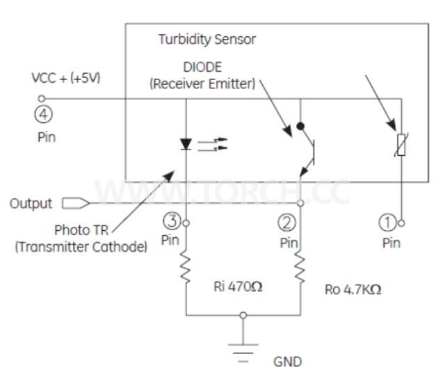 圖中所示的一體化光學(xué)濁度傳感器和濁度檢測(cè)模塊使用光電晶體管和二極管來(lái)測(cè)量光線在樣本液體中的傳輸。這種基本的傳感器非常適合家用電器使用,并且有助于降低能耗,比如檢測(cè)衣服何時(shí)干凈可以縮短洗衣時(shí)間。