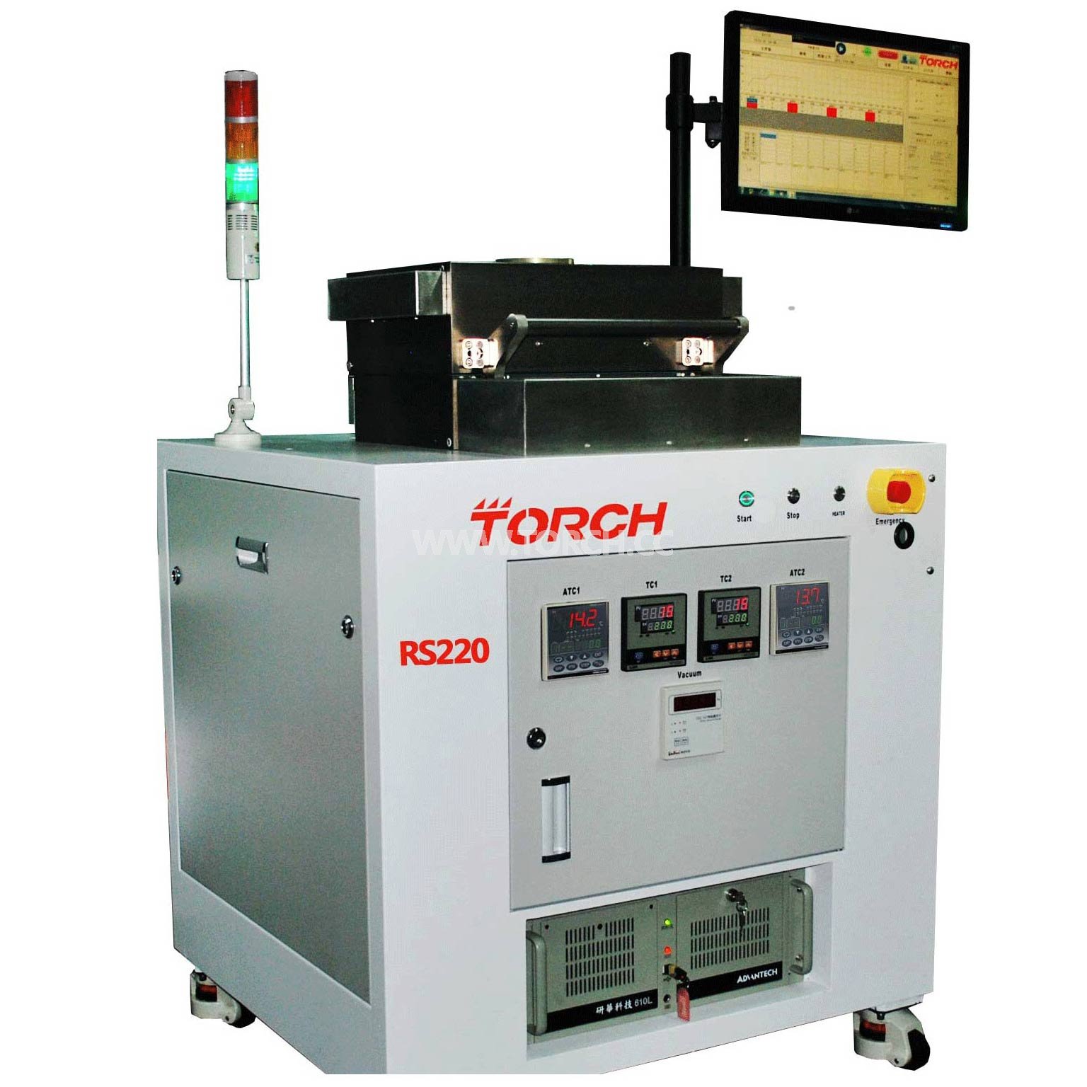 真空共晶爐在真空環(huán)境下加熱,來(lái)實(shí)現(xiàn)無(wú)空洞焊點(diǎn),能夠滿足研發(fā)部門對(duì)測(cè)試及小批量生產(chǎn)的要求;能夠達(dá)到被焊接器件焊接區(qū)域空洞范圍減小到 2%;可應(yīng)用無(wú)熔劑焊接,無(wú)空洞焊點(diǎn),可使用不同氣體(N2,N2/H2 95%/5%)等各種氣氛的應(yīng)用;可使用無(wú)鉛的焊膏或焊片的工藝,也可使用無(wú)助焊劑工藝;其軟件控制系統(tǒng)操作簡(jiǎn)單,能直接控制設(shè)備及設(shè)定各種焊接工藝曲線,并根據(jù)工藝不同進(jìn)行修改創(chuàng)建。